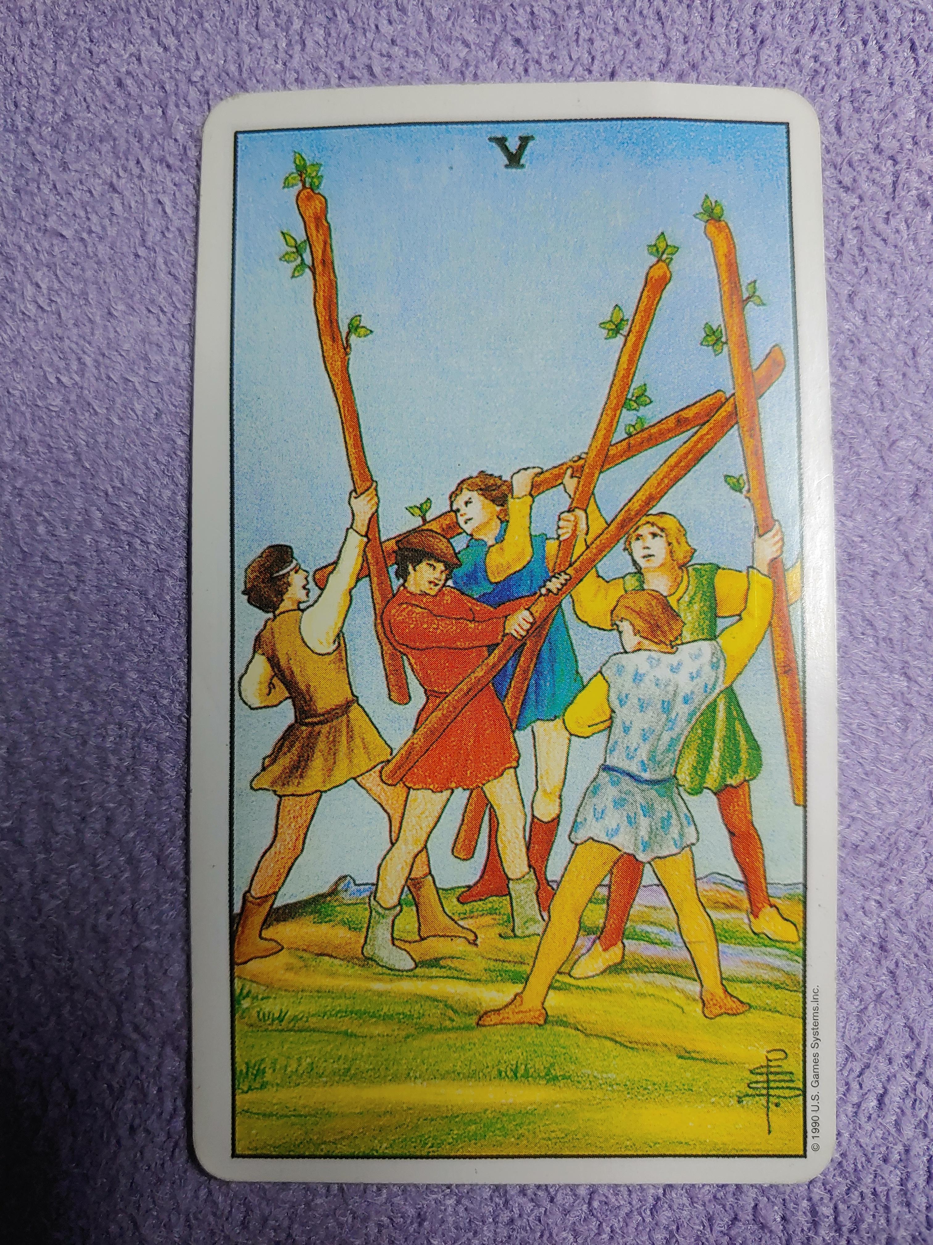 오늘은 유니버셜웨이트 타로카드 중에서 마이너 카드 5번 핍카드를 해석해보려고 합니다.
